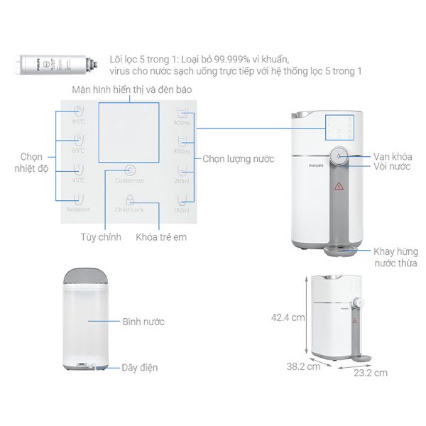 Máy lọc nước RO để bàn Philips ADD6910 được nhiều người ưa thích vì không chỉ lọc sạch mà có thể đặt ngay trên bàn ăn, bàn làm việc, bàn bếp để sử dụng dễ dàng, tích hợp vòi mini mang lại trải nghiệm vô cùng tiện lợi. Sản phẩm này phù hợp với cả những không gian có diện tích chật hẹp nên tiếp cận được đa dạng đối tượng khách hàng, tạo thiện cảm ngay lần đầu sử dụng. Philips ADD6910 còn được trang bị rất nhiều tính năng ưu việt khác, hãy cùng Huy Trương khám phá qua bài viết sau đây nhé.