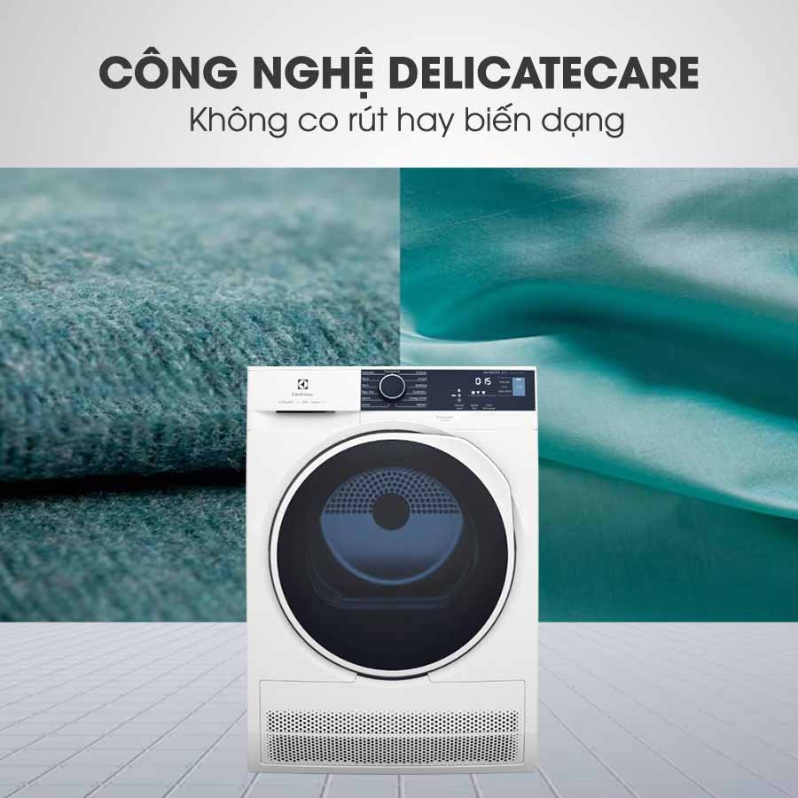Máy sấy Electrolux này được trang bị chương trình sấy vải mỏng DelicateCare, đây là một chức năng đặc biệt được thiết kế nhằm chăm sóc và bảo vệ các loại vải mỏng. Bằng cách sử dụng nhiệt độ thấp, chương trình Delicate giúp ngăn chặn tác động quá mạnh lên sợi vải mỏng, giảm nguy cơ làm hỏng hoặc giãn nở vải. Điều này đặc biệt quan trọng khi sấy các loại vải nhạy cảm như lụa, ren, len và các vật liệu mỏng khác. Nhờ vậy mà quần áo có chất vải mỏng sẽ được giữ độ bền theo năm tháng.