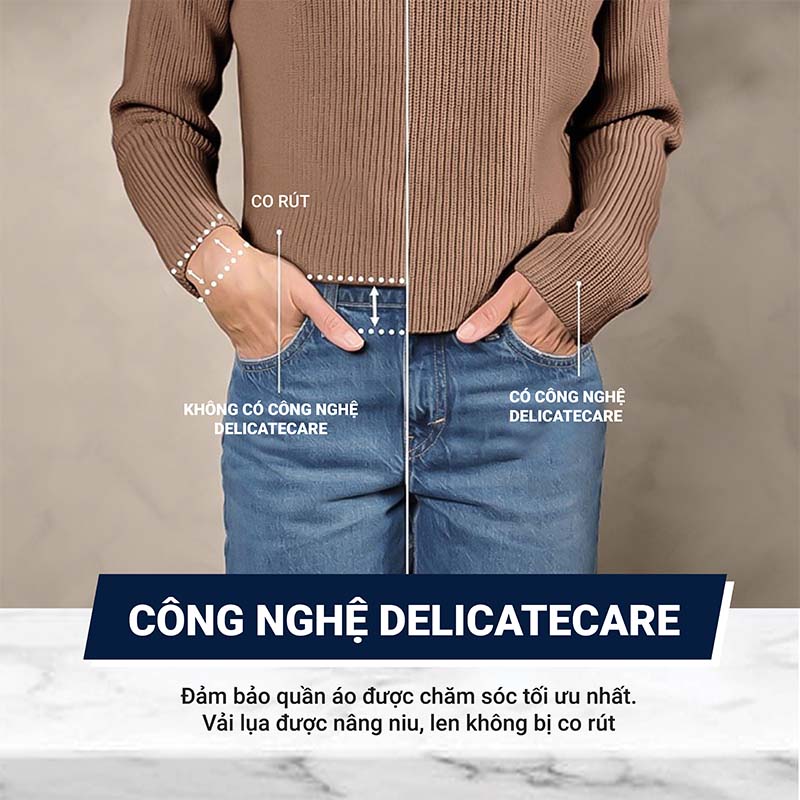 Bên cạnh đó, công nghệ này còn điều chỉnh quy trình sấy sao cho phù hợp với từng loại vải, giúp duy trì cấu trúc và độ mềm mại của sợi vải. Nhờ đó, quần áo không những khô hoàn toàn mà còn giữ được cảm giác mềm mại như mới, tránh được tình trạng khô cứng sau mỗi lần sấy.