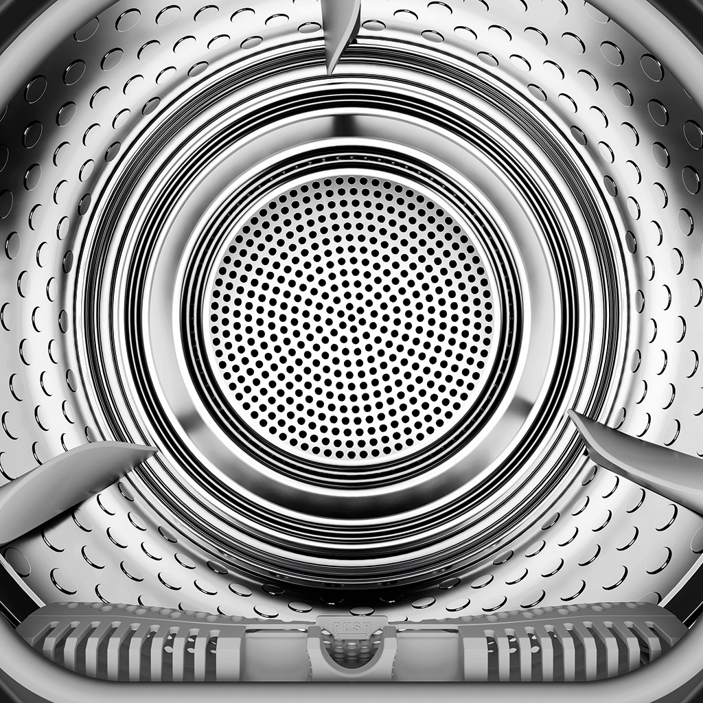 Lồng sấy của máy được chế tạo từ thép không gỉ cao cấp, có độ bền vượt trội và khả năng chống bám cặn hiệu quả. Nhờ đó, lồng sấy không chỉ giữ được vẻ sáng bóng mà còn hạn chế tối đa tình trạng ăn mòn, giúp duy trì chất lượng và tuổi thọ của máy trong suốt quá trình sử dụng. Việc vệ sinh cũng trở nên thuận tiện hơn, giúp người dùng dễ dàng bảo trì thiết bị để đảm bảo hiệu suất hoạt động ổn định và bền lâu.