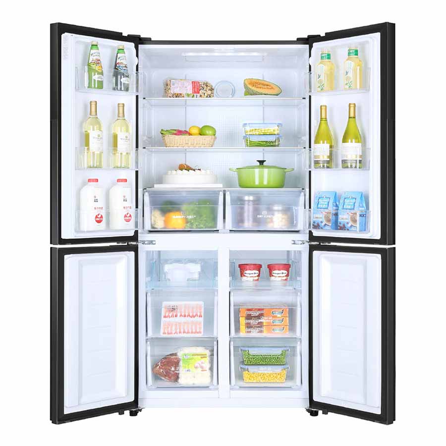 Thiết kế 4 cửa với nhiều khay, kệ, hộc cho không gian lưu trữ thực phẩm lớn